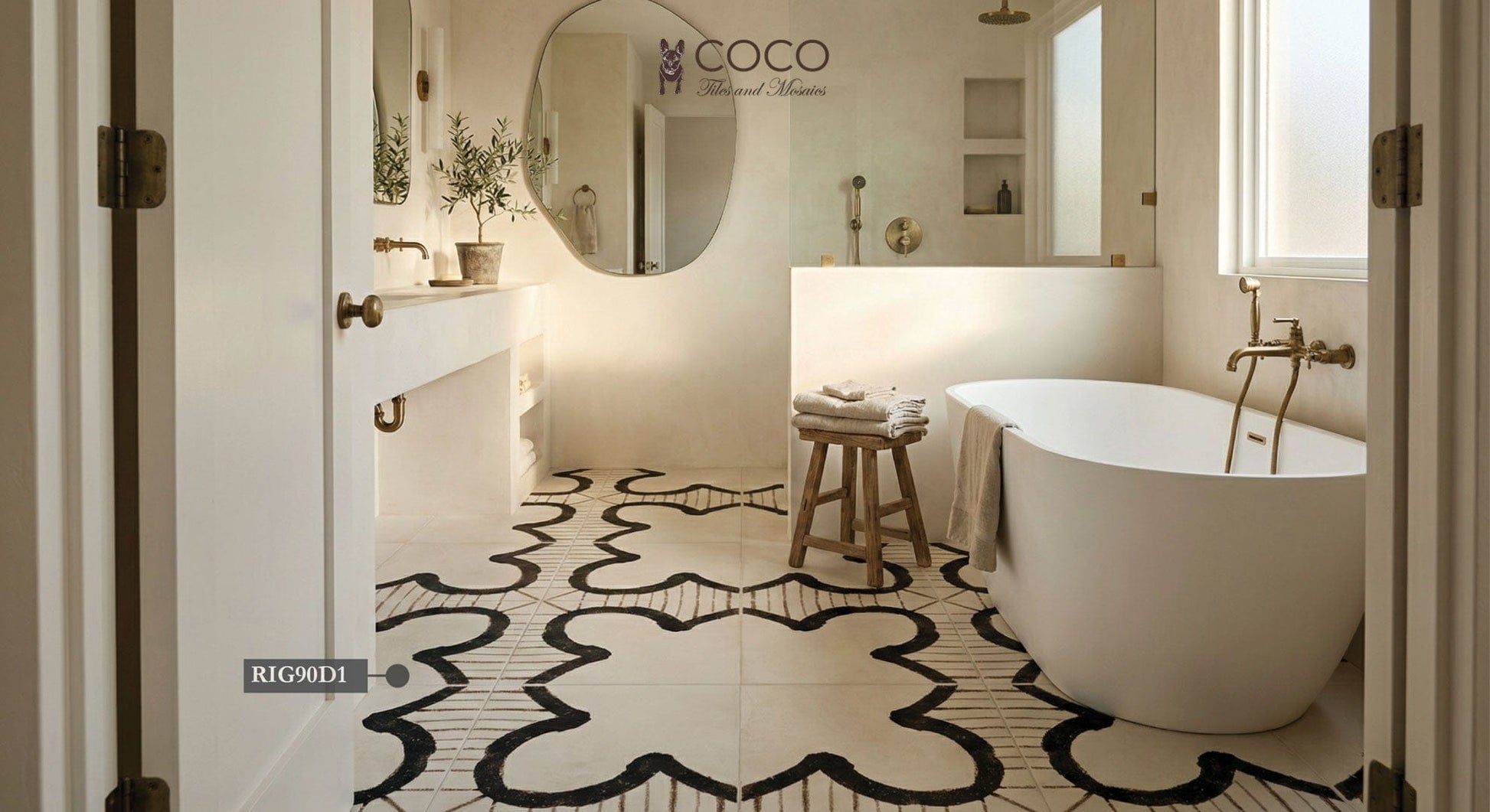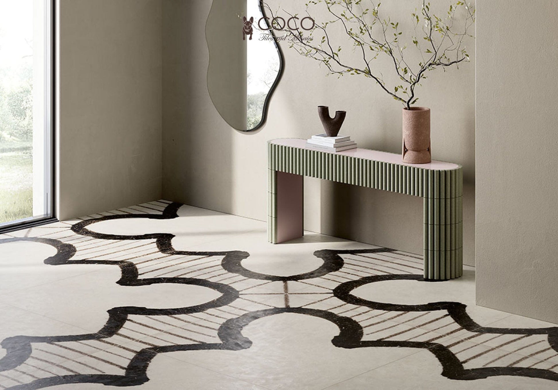 The graphic motifs feel timeless: abstract enough to sit confidently in modern interiors, yet rich with heritage character—like the past and present speaking in the same breath. Designed with architects and interior designers in mind, Aria’s patterns can be paired in stylish, original combinations to create feature walls, statement floors, and “rug” style inserts with real visual rhythm.