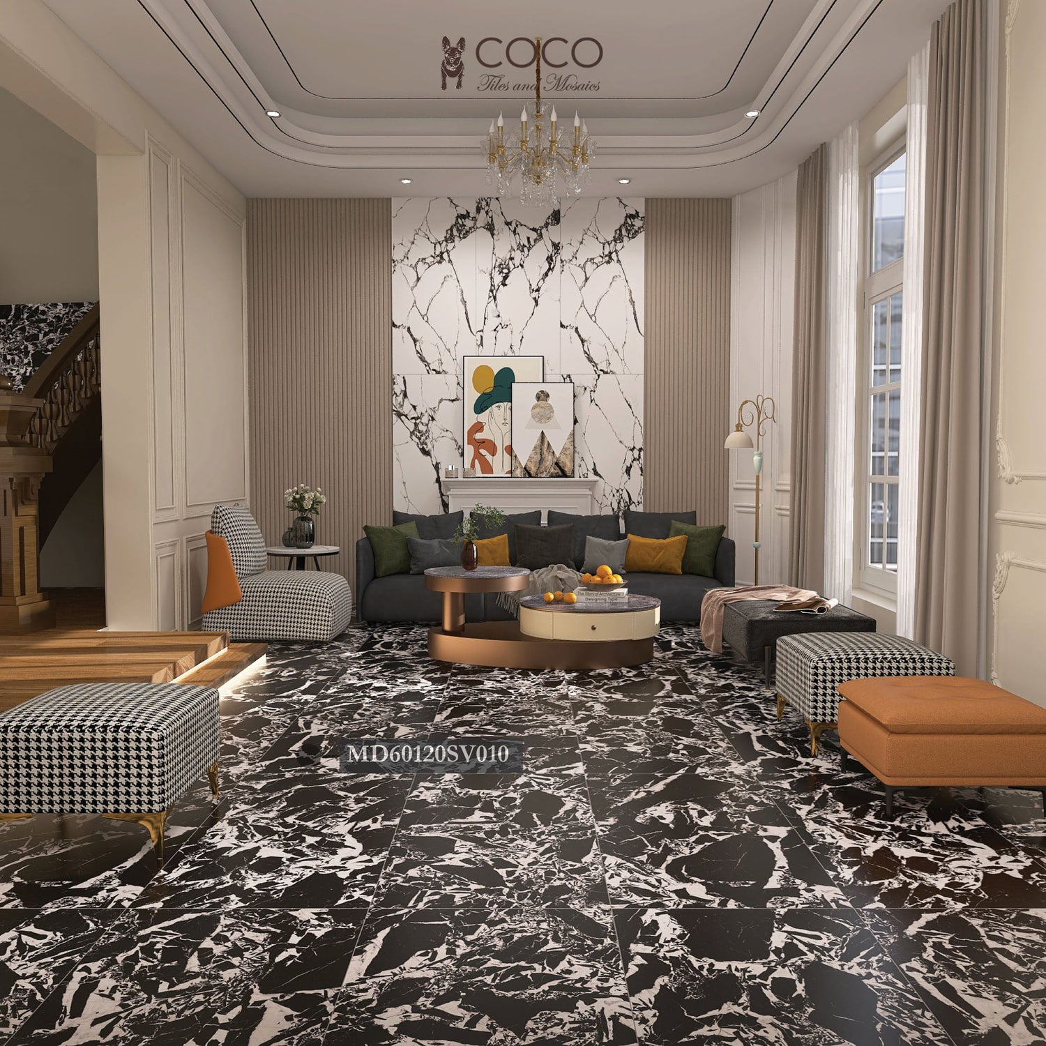 Designed to captivate, this collection offers a harmonious blend of bold contrasts and delicate veining, perfect for those who appreciate the interplay of light and dark, subtle and striking. It’s an ideal choice for high-end interiors that demand both sophistication and character. Whether you’re curating a modern retreat or an opulent statement space, these tiles bring a refined yet ever-evolving aesthetic to any room.