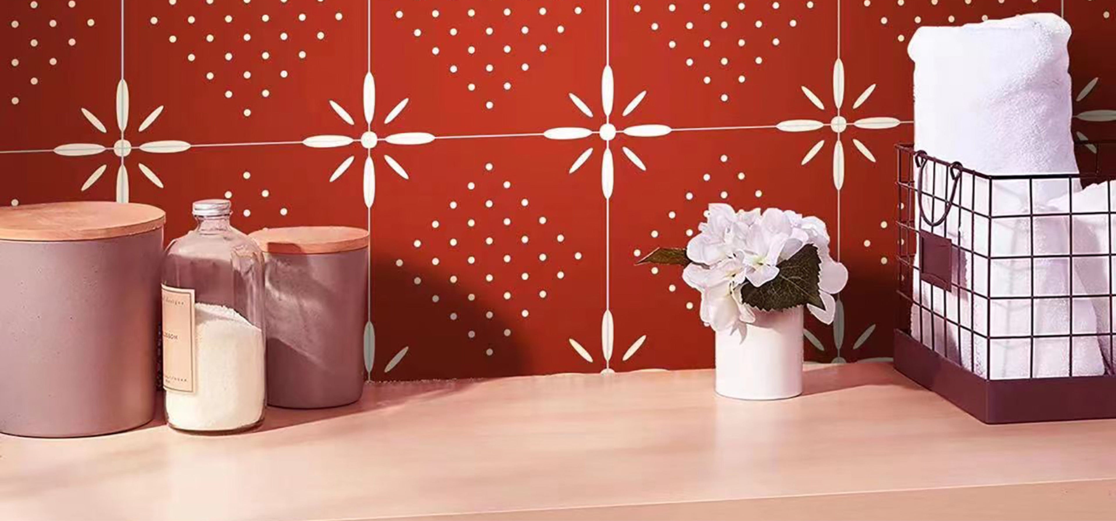 The Little Lady Series - 300 x 300mm semi gloss finish tile that is characterised by rich colours and bold geometry patters. Use warm, rich colours like reds for rooms that don’t have an abundance of nature light to create a room that feels welcoming and confident. Strong colour feels luxurious and nurturing and cannot fail to introduce a little passion to your home.