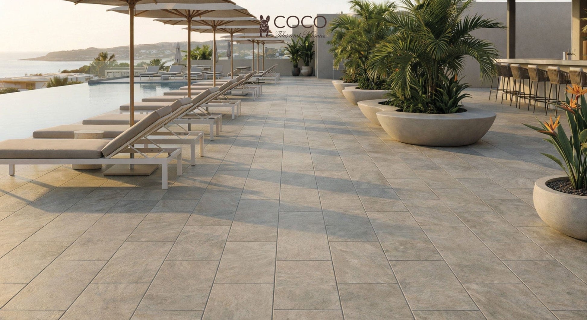 Perfect For: Sophisticated outdoor terraces, contemporary patios with natural elements, transitional design schemes, spa-inspired outdoor areas, and residential spaces seeking authentic stone character with modern performance.