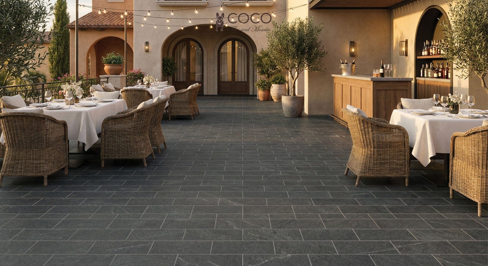 Make a bold statement with Celestial Veil, where dramatic dark grey tones evoke the mysterious beauty of volcanic Italian stone. This striking tile creates sophisticated outdoor environments with commanding presence, perfect for those who appreciate the dramatic side of Italian design heritage.